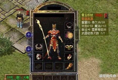 再看看上图中这把骨玉权杖,18点魔法属性上限刚好和王者之杖的魔法属性上限一样。在那个复古版本阶段,拥有这把超级骨玉权杖搭配一身高魔首饰惊为天人!一把火烧主动,攻城也是让对方狂喝药水。